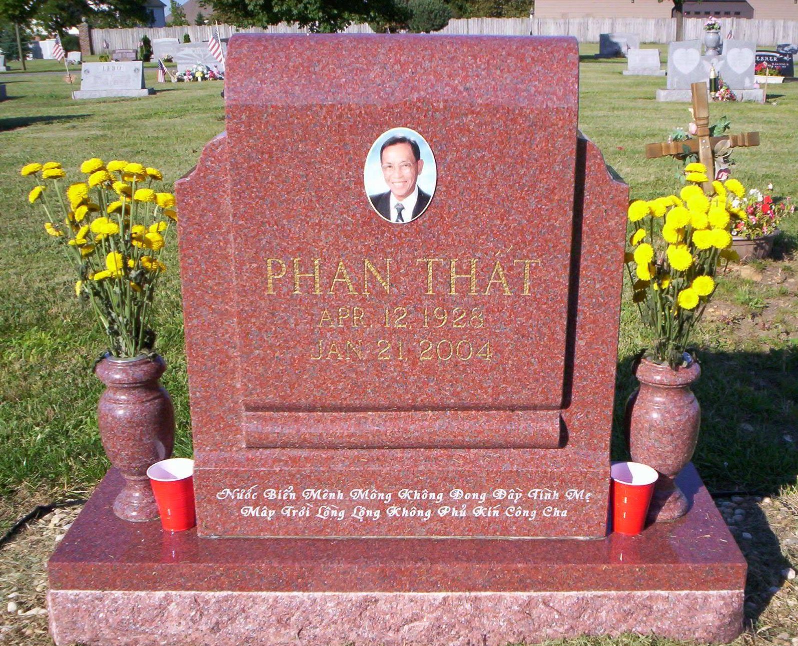The most popular Memorial is a called an Upright Memorial. The top part is called a tablet or a die. The bottom part is a called a base. It can be all polished, all steeled, polished front and back, polished front and back and top, polished front, back, top and sides, and can be contoured in different shapes.